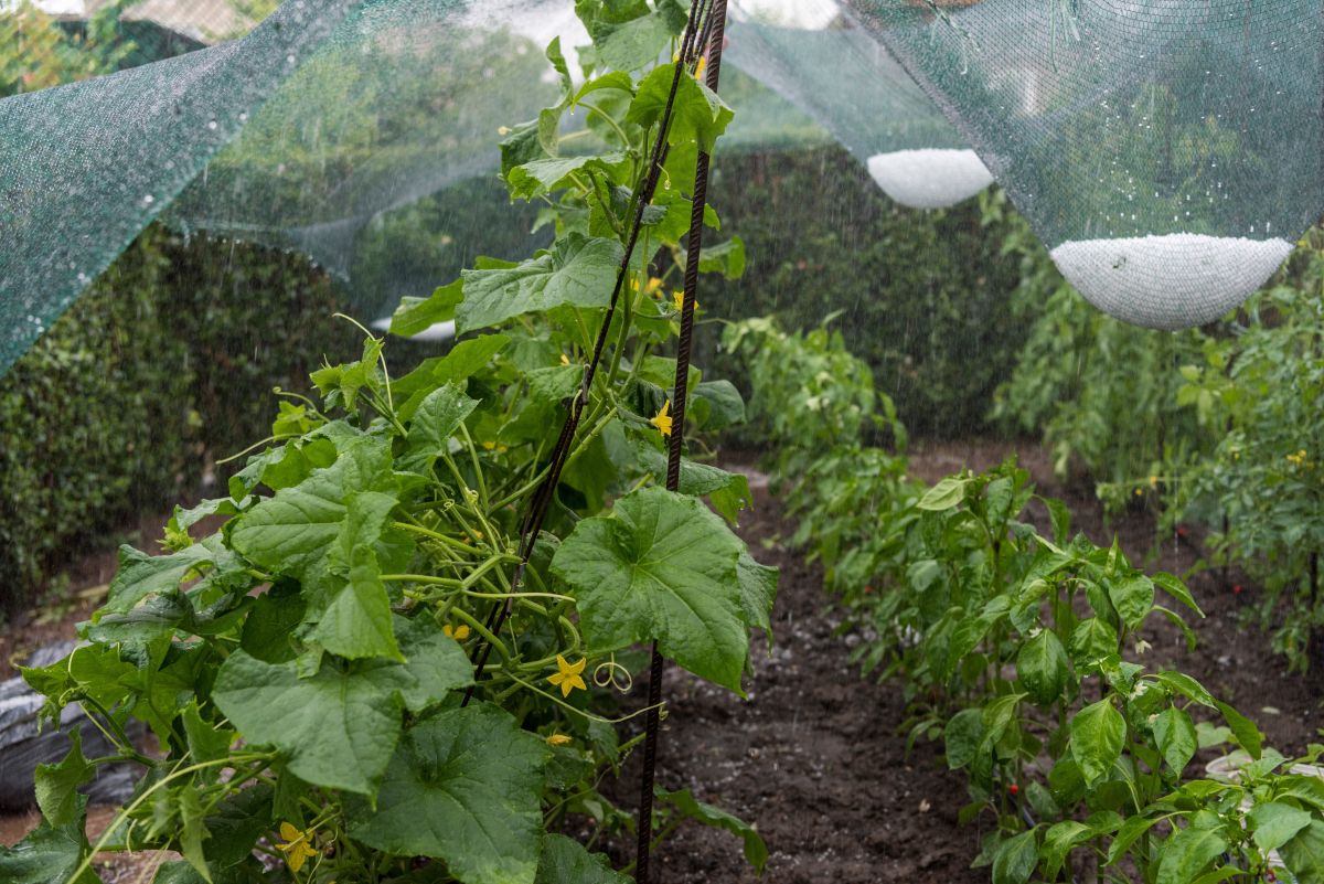 Tla okoli rastlin, ki smo jih ohranili, rahljamo in na novo zastremo z zastirko. Tudi močno sonce, ki posije takoj po neurju, lahko tako poškodovane rastline še dodatno prizadene. Nekaj škode naredijo še polži, ki jih je po takih neurjih običajno vsepovsod polno.